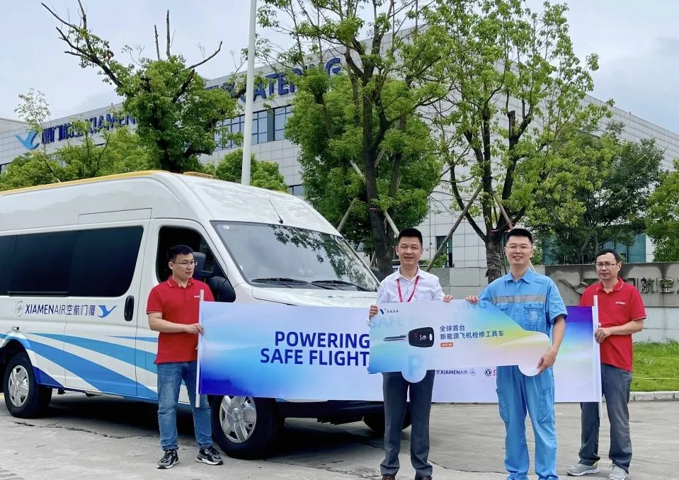 In response to the national call for environmental protection and to accelerate the electrification,intelligence, and connectivity of specialized airport ground equipment, there is a pressing need to enhance safety management for new energy vehicles. This includes establishing standards for vehicle admission, safety status monitoring, and emergency rescue. On September 22, at Xiaoshan Airport, VASA Group, in collaboration with Xiamen Airlines and Dongfeng Yufeng, officially unveiled the world’s first new energy aircraft maintenance toolvehicle.