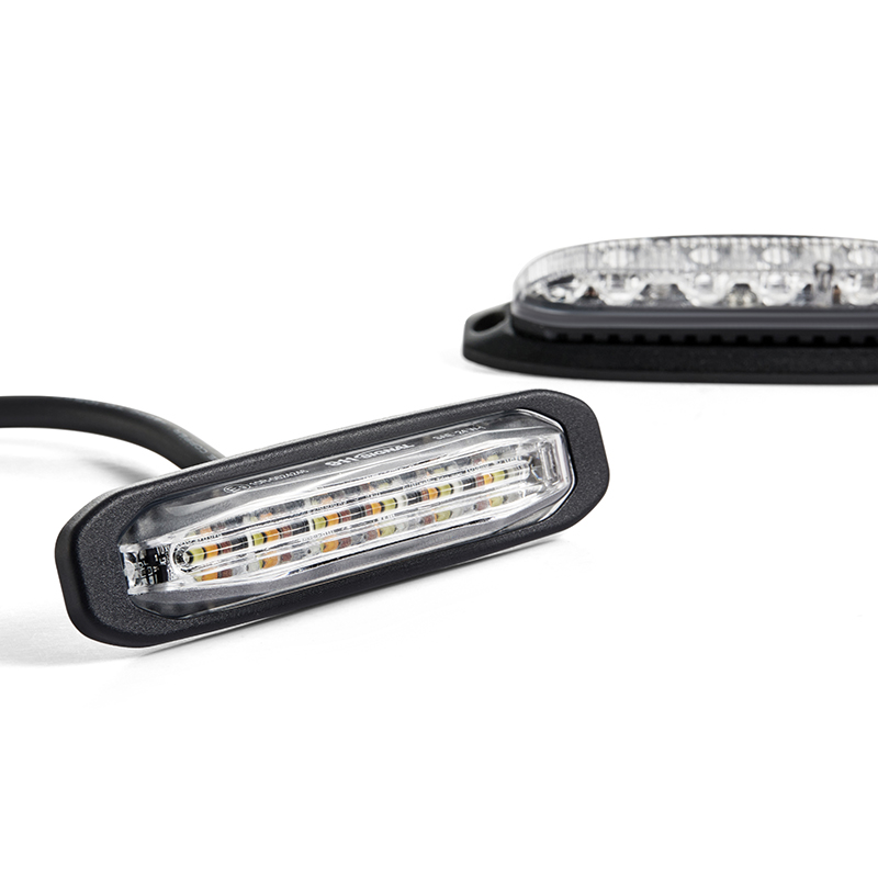 | 025101TAW | DC10-33V|MAX 10W|110*25*15mm|clear lens|clear lampshade|black base|6 amber LEDs,6 white LEDs|14 flash patterns|screw mount|sheathed cable|6-core wire|IP67\IP69K | |||