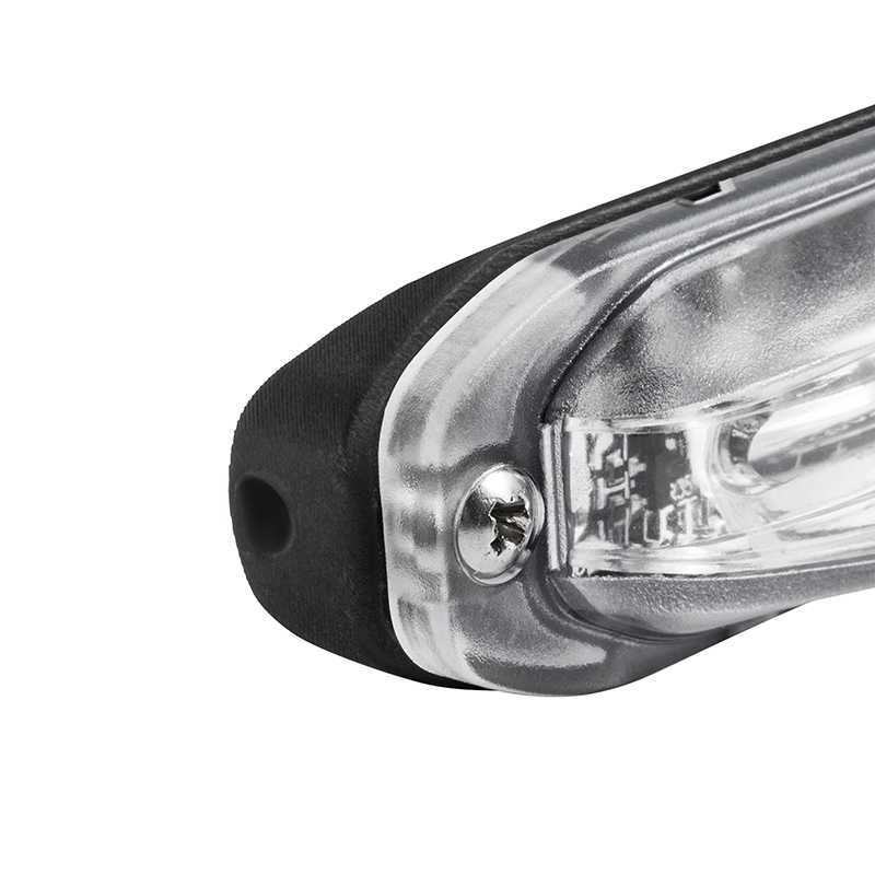 | 025105W | DC10-33V|MAX 10W|110*25*15mm|clear lens|clear lampshade|black base|6 white LEDs|14 flash patterns|screw mount|sheathed cable|5-core wire|IP67\IP69K | |||