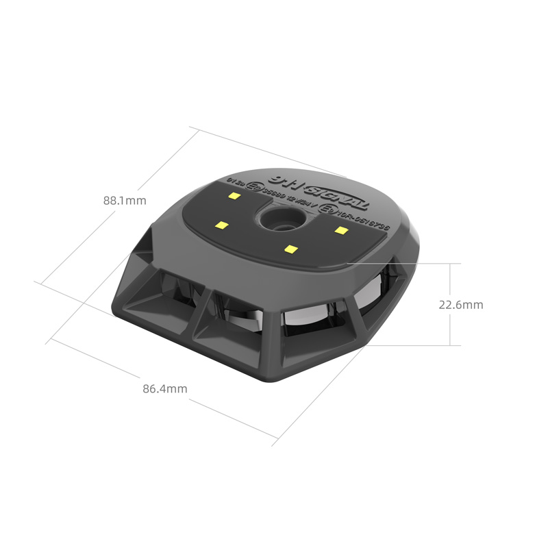 | 024002A | BEAR | DC10-33V|MAX 23W|86*88*23MM|Reflective cup|Zinc alloy cover|6 amber LEDs, 4 white LEDs 500LM|12 flashing methods|Screw installation|5-core sheathed wire|IP67\IP69K| Outer box B01WGWX30002, lining B01WGX300001, lining B01WGX100001, lining B01WGX200001, instruction manual B08BEAR00001 |
