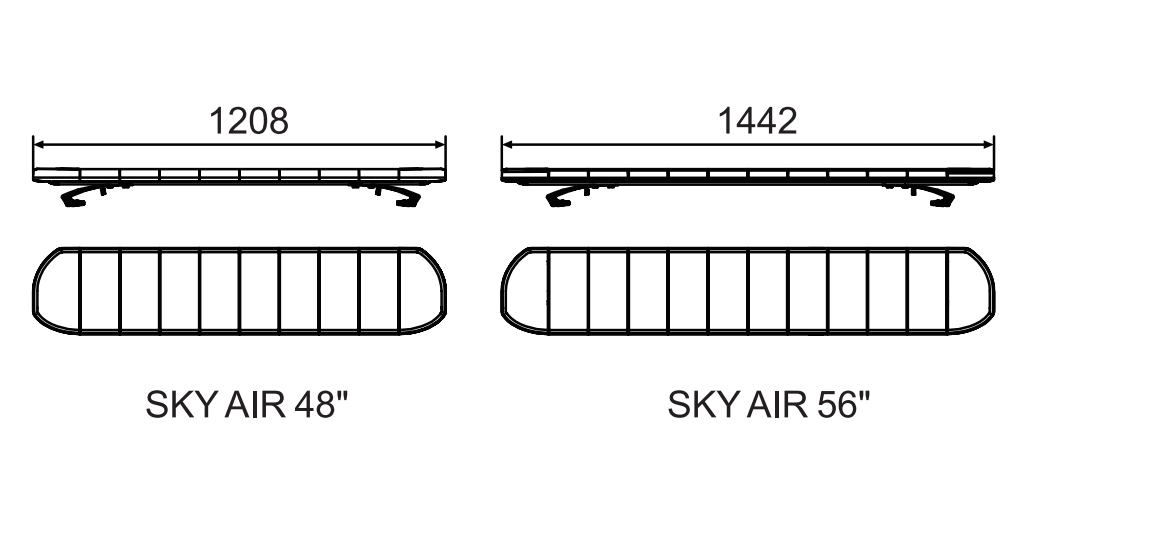 013750A | SKYLINE AIR 56 | DC10-33V|MAX 120W|1442*250*45MM (without tripod)|Reflective cup|Blackened upper cover|Blackened lower cover|LED blue 66 pcs white 12 pcs|29 flash methods|Plastic tripod installation |4-core sheathed functional cable|IP68 |