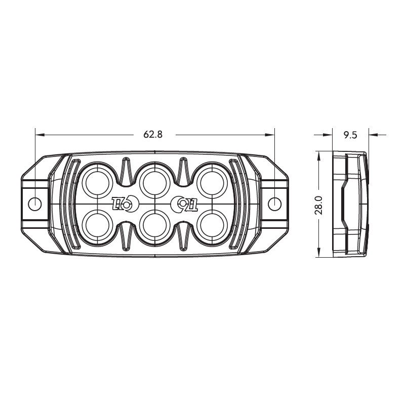 | 023801A | F3S | DC10-33V|MAX 9W|70*28*9.5MM|Transparent lens|Outer cover black|6 amber LEDs|19 flashing methods|Screw installation, 3M glue paste|4-core wire|IP67\IP69K |