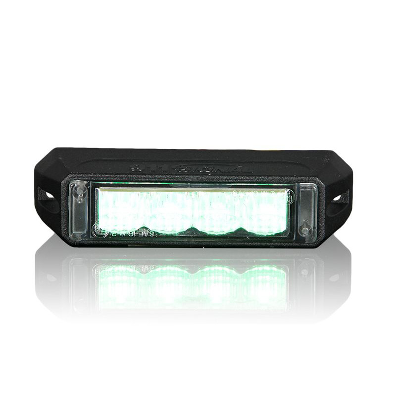 | 020101G | C4 | DC10-33V|MAX 6W|116*30*28MM|Reflective cup|Lampshade transparent|Outer cover black|4 green LEDs|19 flashing methods|Screw installation|4-core wire|IP67\IP69K |