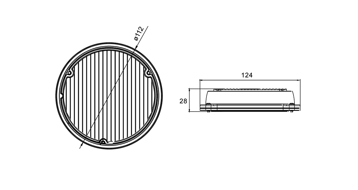 020601W | PT7 | DC12-24V|MAX 16W|φ112*28MM|Transparent lens|Base black|7 white LEDs|19 flashing methods|Screw installation|4-core wire|IP67\IP69K |