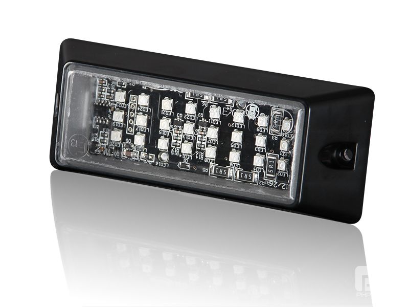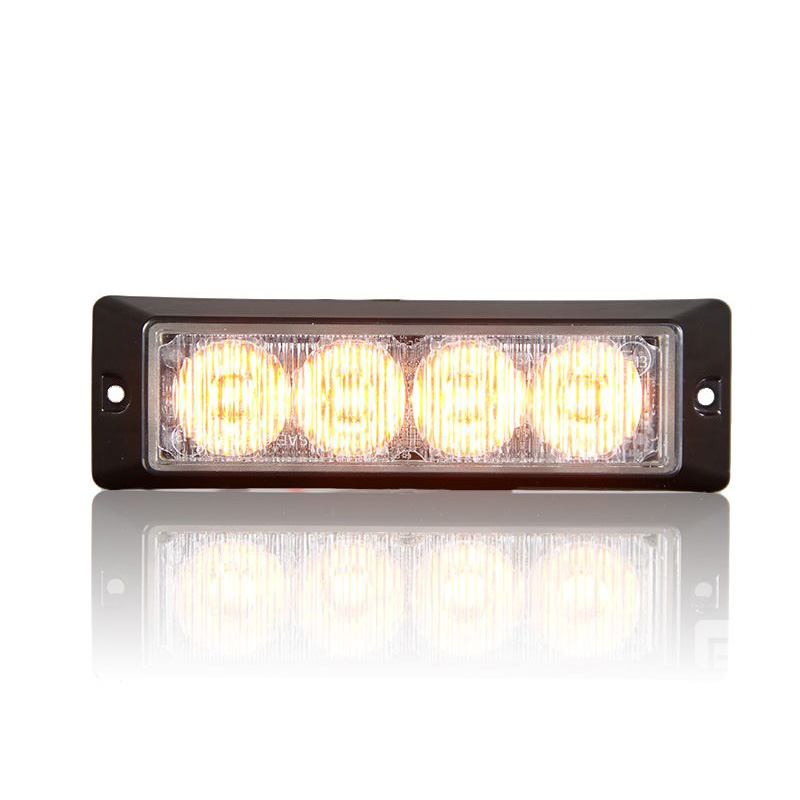 | 020202A | E4 | DC10-33V|MAX 6W|117*45*24MM|Transparent lens|Lampshade transparent|Outer cover black|4 amber LEDs|19 flash methods|Screw installation|4-core wire|IP67\IP69K |