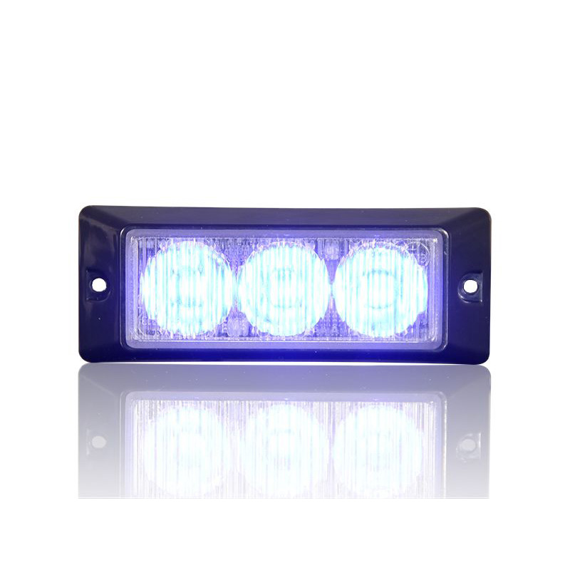 | 020201B | E3 | DC10-33V|MAX 4.5W|117*45*24MM|Transparent lens|Transparent lampshade|Black outer cover|3 blue LEDs|19 flash methods|Screw installation|4-core wire|IP67\IP69K |