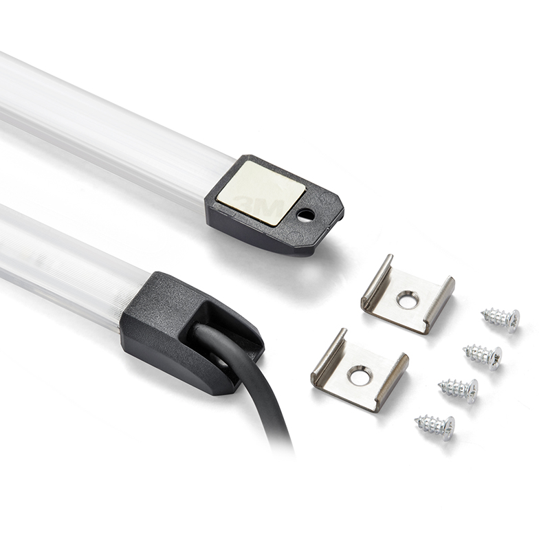 | 170302W | 540mm, Warm White(4000K) | DC 10-33V|MAX 7.5W|540×20×11mm|silicone cover|54 white LEDs|800LM|4000K|screw mount、3M adhesive mount|1M sheathed cable|2-core wire|IP69K | ||||