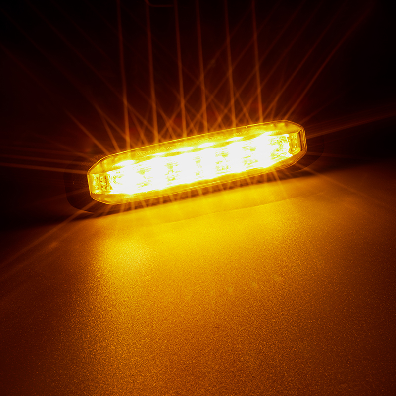 025105ADC10-33V|MAX 10W|110*25*15mm|clear lens|clear lampshade|black base|6 amber LEDs|14 flash patterns|screw mount|sheathed cable|5-core wire|IP67\IP69K