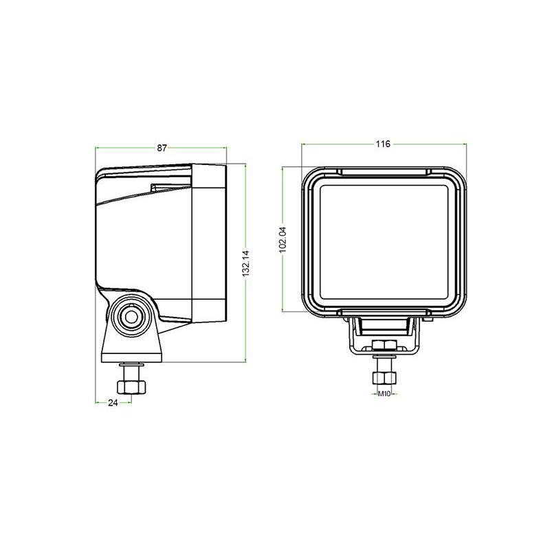 | 120251 | S22 | DC10-33V|MAX 38W||116*102*87MM|Reflective cup|Back cover black aluminum alloy|9 white LEDs|2200LM|6500K|Lightening angle 30° horizontal 13° vertical|Bracket installation|2-pin connector DT04- 2P|IP69K |
