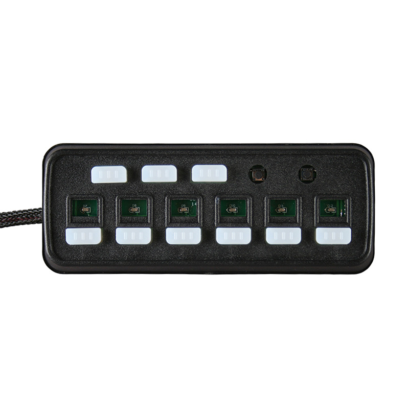 | 030201 | BR993 | DC 10-30V|167*65*30MM|Black shell|6 custom buttons|No load 6 groups maximum 2MA|Adjustable bracket installation|8-core plug-in cable |