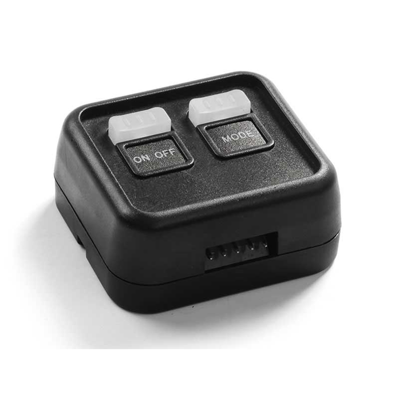 This two button switch box functions has an ON/OFF switch as well as a momentary switch which allows the user to scroll through flash patterns. The buttons on the switch box light up and are clearly visible at night.